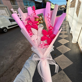 Nosso novo buquê une a delicadeza das flores eternas em tons de rosa, com a sofisticação irresistível dos chocolates Ferrero Rocher – tudo isso envolvido em uma embalagem personalizada e pensada para impressionar.